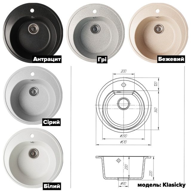 Гранітна кухонна мийка Romzha Klasicky. Гранітні мийки, мийки на кухню, раковина на кухню