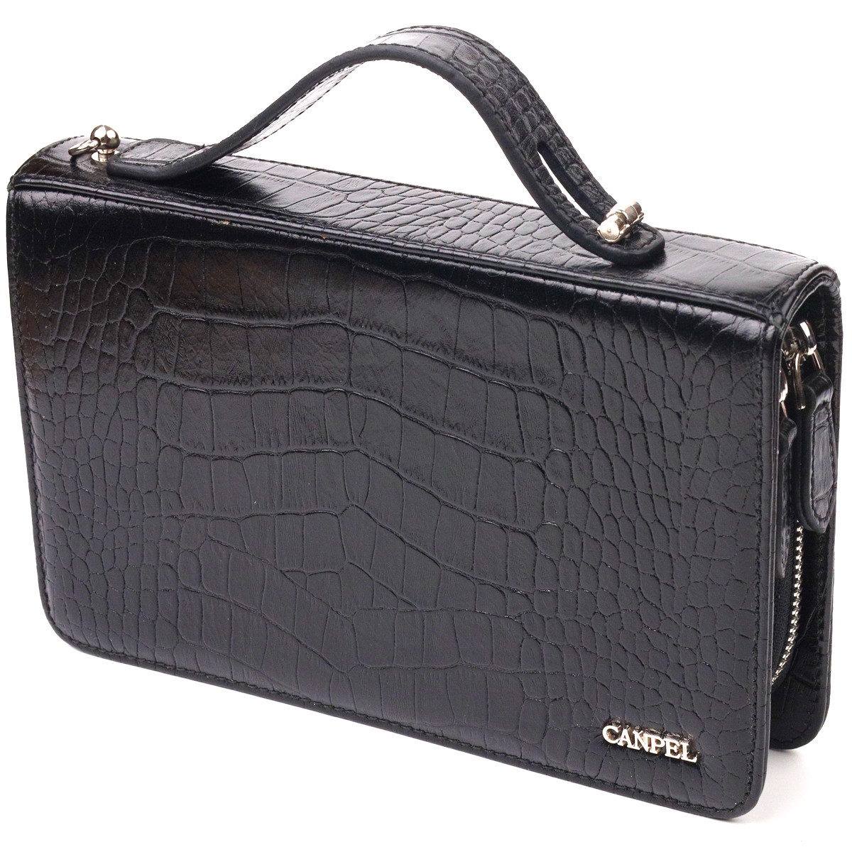 Стильна чоловіча барсетка на два відділення з натуральної фактурної шкіри з тисненням під крокодила CANPELLINI 21570 Чорна